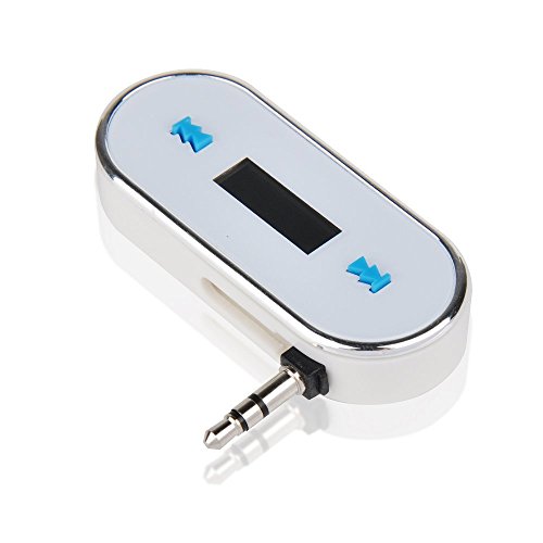PRODUCT DESCRIPTIONS:Overview: This LCD Display Wireless FM Transmitter can play stereo quality sound from your Phones, Tablet PC and other devices with 3.5mm headphone socket to your car's FM radio or home stereo system, with this exquisite FM Transmitter, you can enjoy your favorite music elegantly, and hands-free phone talking safely in the car through your car speaker. Just tune your car's radio into any unused FM channel, match the same frequency on this transmitter from 87.5MHz to 108.0 MHz with an increment of 0.1MHz to your radio frequency and entertain yourself to your favorite music selection saved in your ipod or iphone. Plug FM Transmitter into Phones, Tablet PC or other devices port and then it's done. Just sit back and enjoy. Features: 3.5mm LCD displays frequency with blue backlight. High Quality Stereo Sound. With Touch key design, High fidelity stereo. Full frenquency range. Memory for last frequency. Specifications: Transmitting Frequency: 87.5-108.0 (MHz) Effective Range: 10M Voltage¡êo5V Output of the USB Car Charger: 5V/ 1000mA Distortion degree: 2% Size of Transmitter: 58mm * 20mm * 9mm Color: White Manual: 1. Connect this device to the compatible mobile phone or other audio device. 2. Tune the frequency of the device to the same as the car radio. Play your music and enjoy via the car stereo. 3. Press the answer key of your mobile phone when the phone rings to answer calls, then talk hands-free via the built in high quality microphone and the car stereo. 4. For optimal voice clarity, a distance of 30-60cm between the user and microphone is advised. 5. If distortion or significant noise occurs, please tune down the volume of the mobile phone and tune up the radio. 6. If the FM signal is interrupted please reset the car radio and the device to another clear frequency.