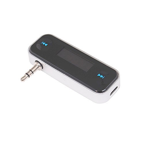 1) FM Transmitter for iPod/iPad/iPhone/MP3/4 players, mobile phones with a 3.5mm audio jack 2) Transmit your favorite tunes from your device to your car / other stereo 3) Hands free talk function offers you safer driving 4) LCD display frequency with backlight 5) Touch key design, High fidelity stereo 6) Digital PLL, transmission is stable in different environments 7) Full frequency range 8) Memory for last frequency 9) Powered by rechargeable built-in lithium battery, do not need to use the iPhone's power 10) Blue LCD backlight display Specifications: 1) Frequency range: 87.5-108MHz / Step 2) Effective Range: 5m 3) Voltage: 5V 4) Distortion degree: 2 percent 5) Color: Black 6) Item Size: 60mm x 21mm x 10mm 7) Weight: 20g Contents 1 x 3.5mm Music Audio FM Transmitter 1 x USB Cable