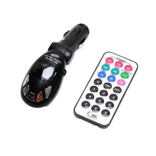 100% band new and top quality; 206 proset FM Channels; Support SD/MMC card /MP3/USB/audio devices; Support 128MB,256MB,512MB,1GB and 2GB/4GB; Support the LINE-IN function; Play Mp3 Files(or WMA); Support MP3 music playing; Car cigar socket power supply (12V DC power); Memory functions of song volume and frequency; Plug in SD Card, enjoy your favorite music; Build in FM transmitter, Axis of rotation on the handle, through which the user can turn the transmitter to a more convenient angle at his/her sitting position. Turn on your car stereo and tune the frequency to the same as your car MP3 player frequency to enjoy your music; Frequency range: Full frequencies (more than 200 frequencies,87.5MHz-108MHz), 0.1MHz gap between channels.