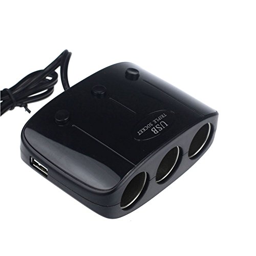PRODUCT DESCRIPTIONS:Provides triple DC socket adapter to power 3 devices or gadgets simultaneously from your vehicle's 12/24 V cigarette lighter, each with independent power button; 120 W total capacity Charge 2 devices simultaneously by USB connection (cables not included, use USB cables that came with your device); 3.1 A total capacity Compatible with full range of car electronic and personal mobile devices, including iPhones and iPads, Android devices, smartphones, tablets, MP3/MP4 players, GPS, laptop computers, and more Durable, smart 3-way DC socket adapter design with high quality materials, including built-in fuse and heavy-duty copper wiring; stylish hi-tech design long power cable for convenient power and charging use